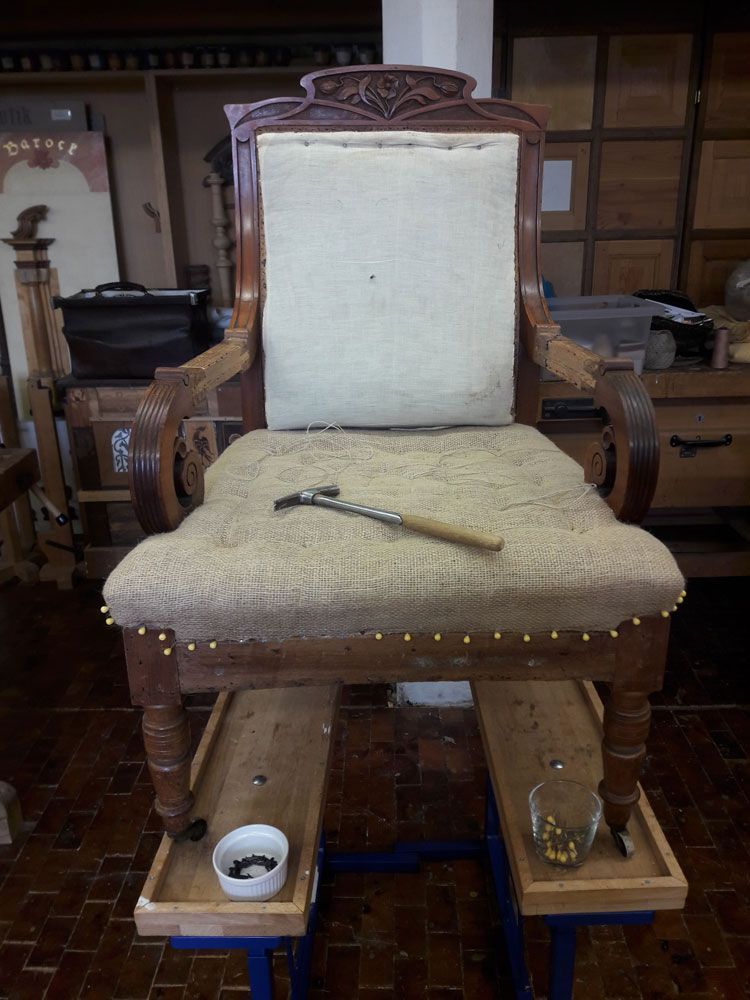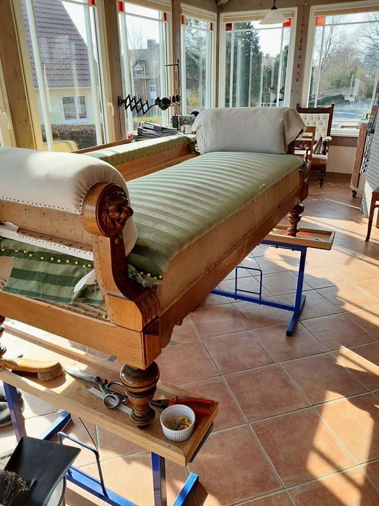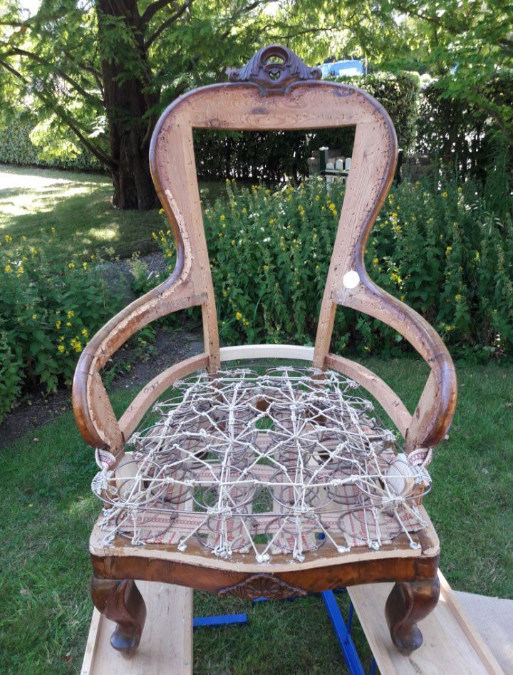Wenn man Polstermöbel restaurieren möchte, ist es wichtig darauf zu achten, möglichst viel der vorhandenen Ursprungssubstanz zu erhalten.