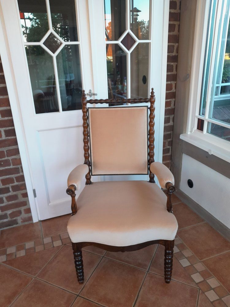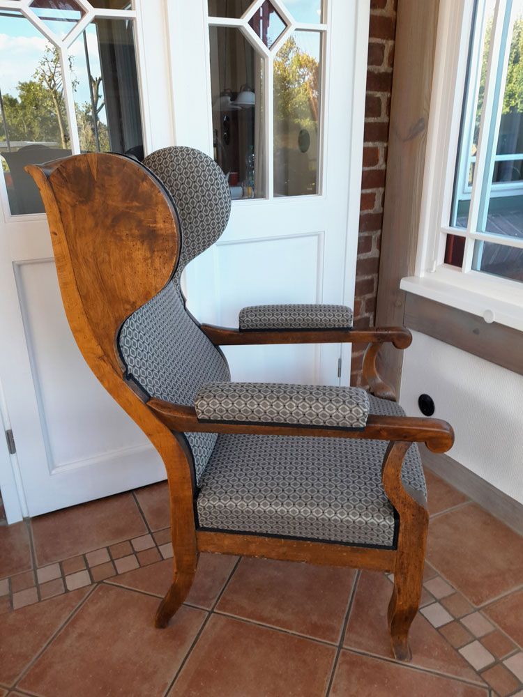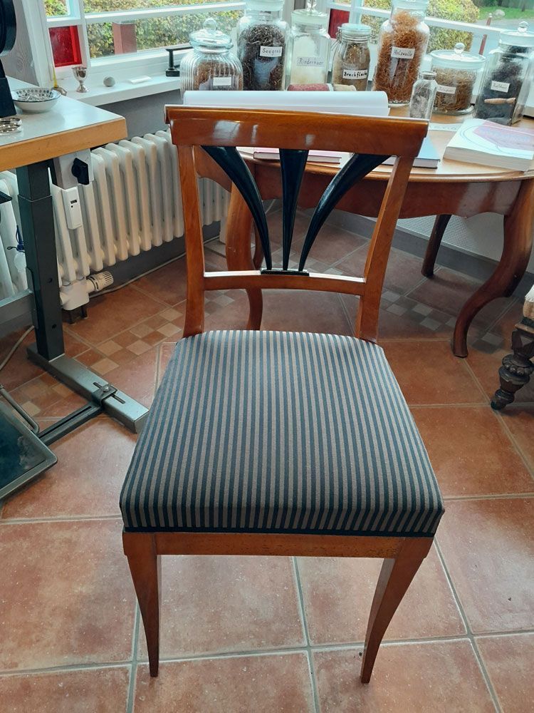 Epochentypische Restaurierung mit originalem, geborgenen Bezugstoff