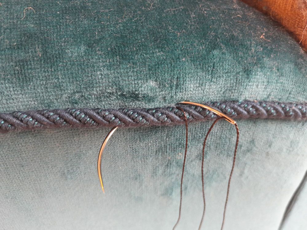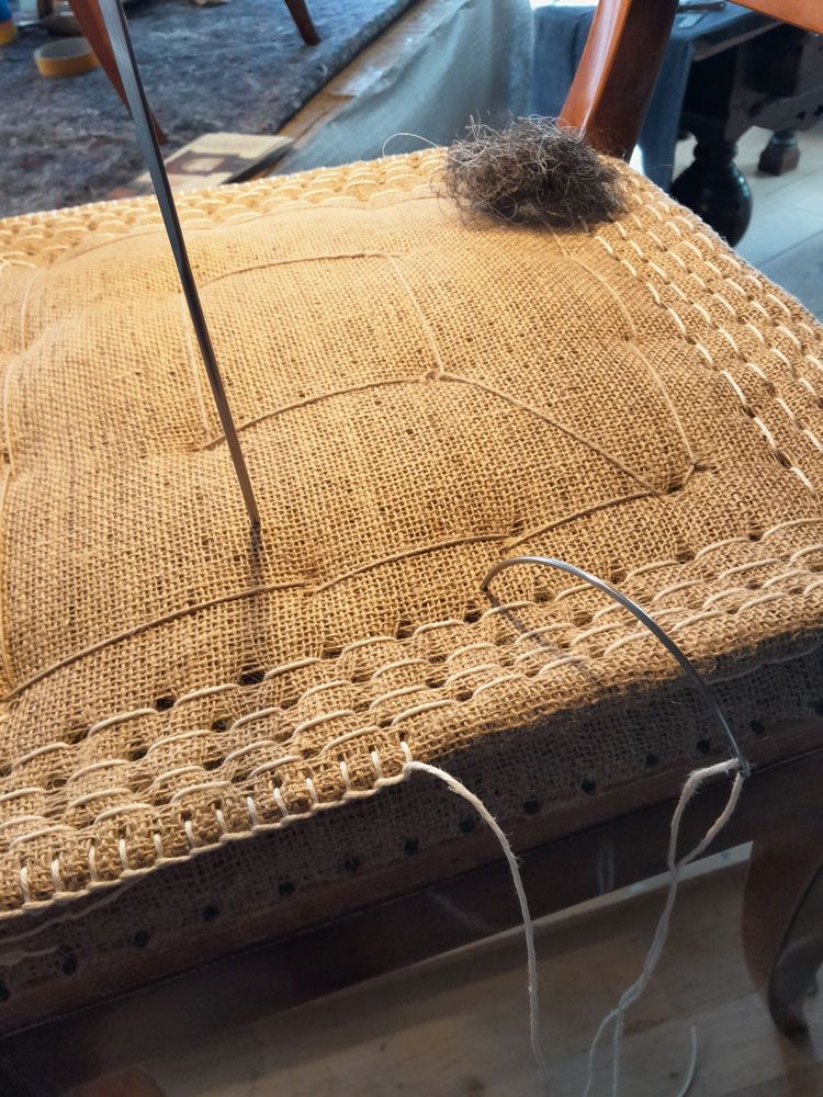 Die fertig geschnürten Federn werden mit einem Jutegewebe abgedeckt. Oft lässt sich das vorhandene Fassonpolster wieder verwenden. Mit Hilfe von Garnierstichen werden die äußeren Kanten in eine feste Form gebracht. Die Pikierung wird meist aus Rosshaar gebildet. Da sich dieses mit der Zeit stark verdichtet haben kann, muss hier gegebenenfalls ergänzt werden.
